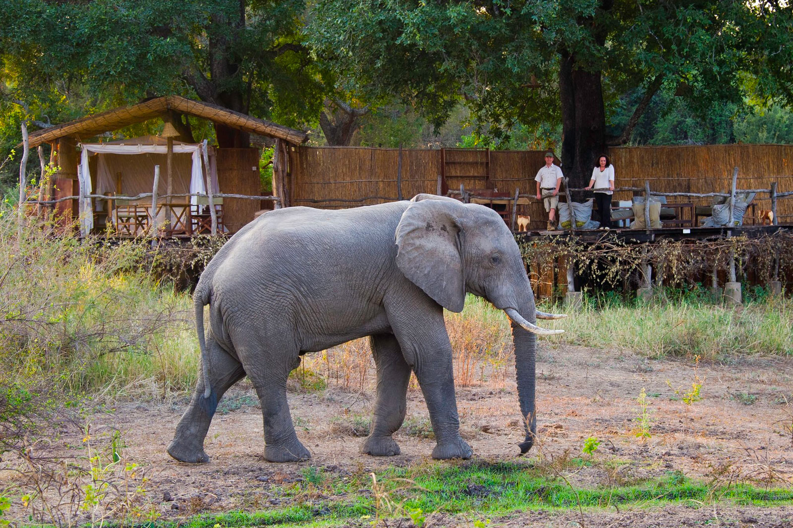 The Tree-house is on mains electricity and has UK style 3-pin rectangular plug sockets for re-charging cameras or laptops. Giraffe, bushbuck, puku and elephant are commonly found all around the Treehouse and it is wonderful to wake to the sounds of elephant feeding below you or having a mud bath from the waterhole in front of the house.